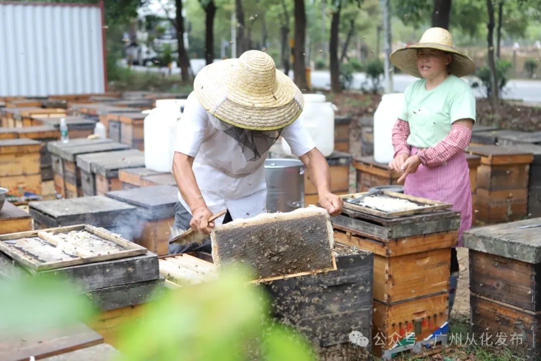 为了守护这份甜蜜,每年荔枝花期,从化区政府都会及时向全区发布《荔枝花期放蜂工作的通知》通告,要求在荔枝扬花期严禁喷施一切农药,以保证蜂群安全以及确保蜜源纯净。相关部门、养蜂协会和蜂产品加工企业也会联合行动,共同做好放蜂期间的各项服务工作;各镇街、派出所、村委则为蜂农撑起“保护伞”,协调蜂农解决各种实际问题,包括选点放蜂、解决生活用水用电、确保良好治安环境等,让蜂农们能够安心放蜂。