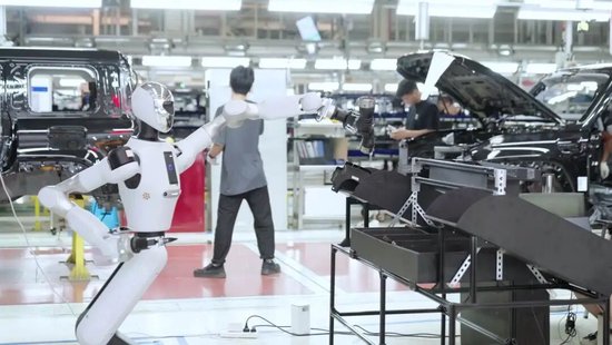 不远处的汽车工厂里,它的同伴们正与人类工人并肩作业,搬运零部件、协助装配。这些机器人不需要二维码导引,不需要预设轨迹,依靠纯视觉感知和理解,就能在复杂环境中自主工作。